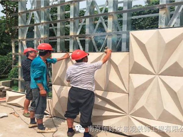 我公司打造了6座2014南京青奧會(huì)墻,分別坐落在青奧會(huì)議中心和青奧村四周。表面光潔細(xì)膩,形體柔美流暢的藝術(shù)造型造就了南京青奧會(huì)場(chǎng)的門(mén)面。類(lèi)石材的GRC干掛做法,有效地避免了傳統(tǒng)焊接造成的腐蝕,增強(qiáng)了產(chǎn)品的安全性和耐久性。